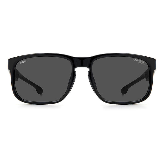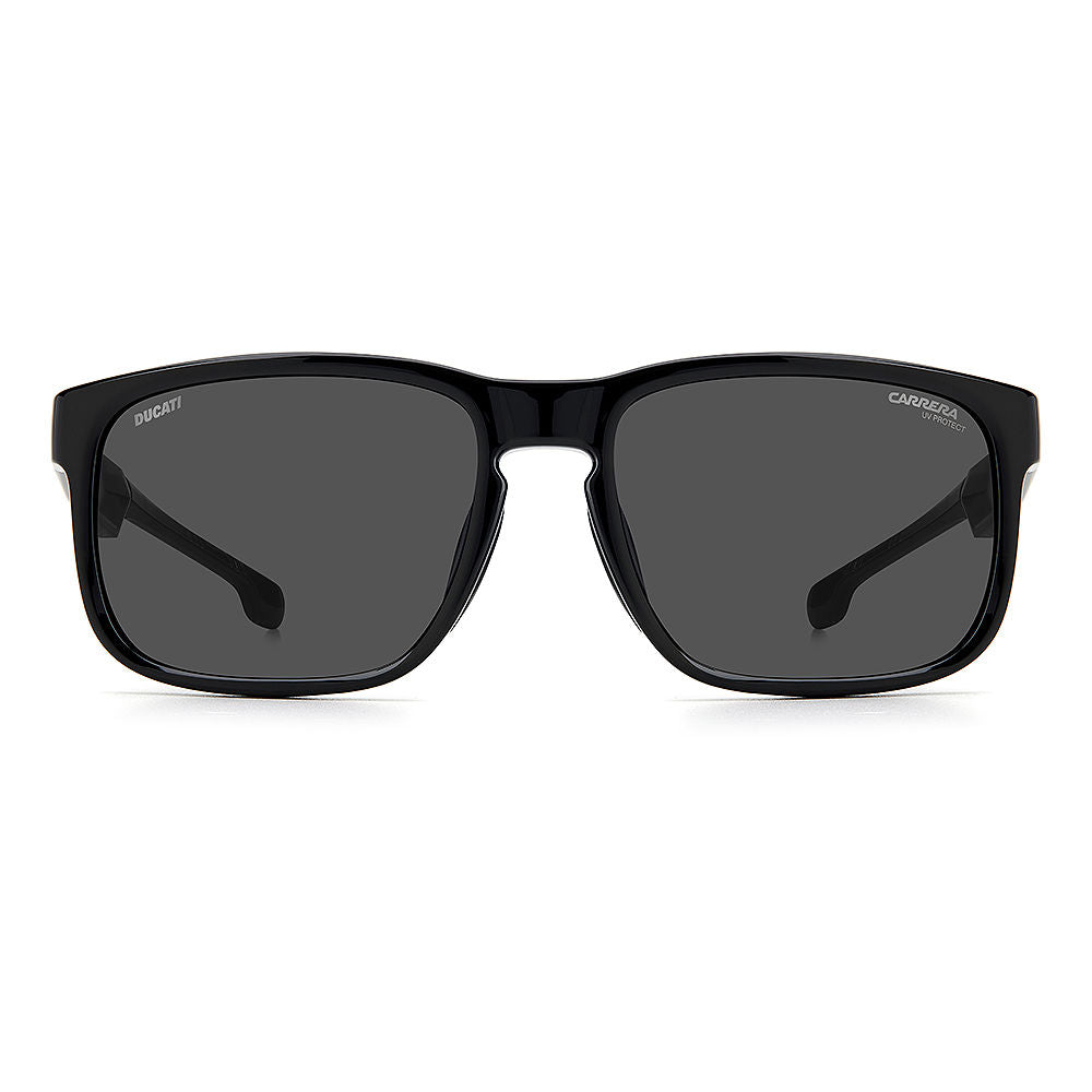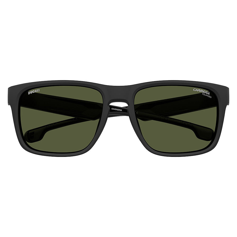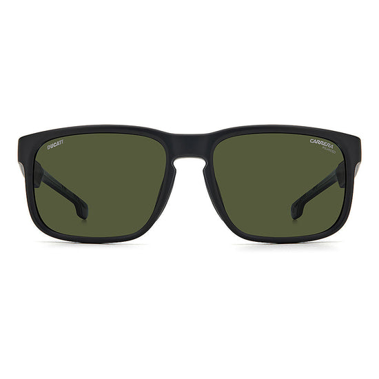 Born from the collaboration between Carrera and Ducati, these sunglasses combine aerodynamic shapes with sporty finishing touches. The square frame is reinforced with rubber panels and internal grips for a secure and stable fit, while the collection's signature colorway means they're a collectible addition to the modern man's wardrobe. Designed for a perfect fit under motorbike helmets, they boast the co-branded Carrera and Ducati styling to finish.