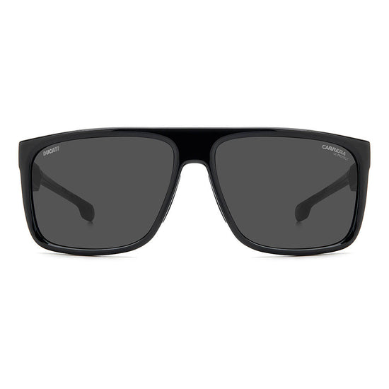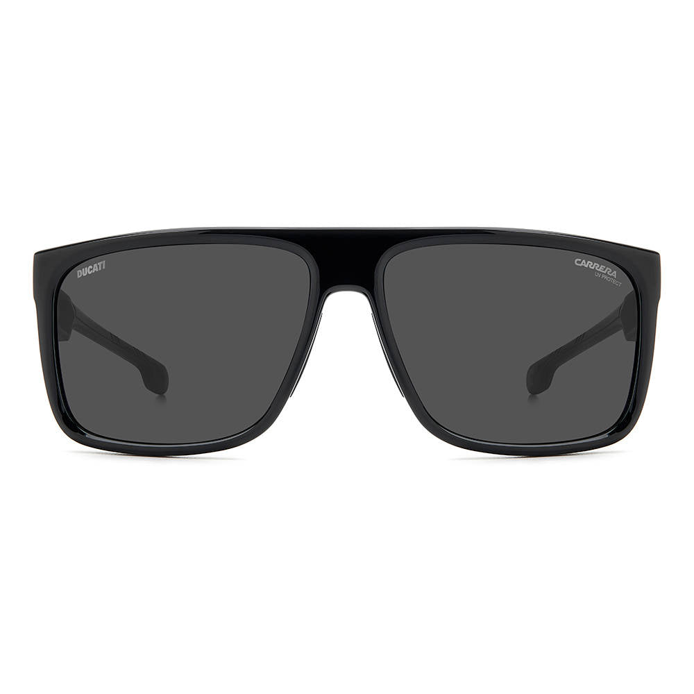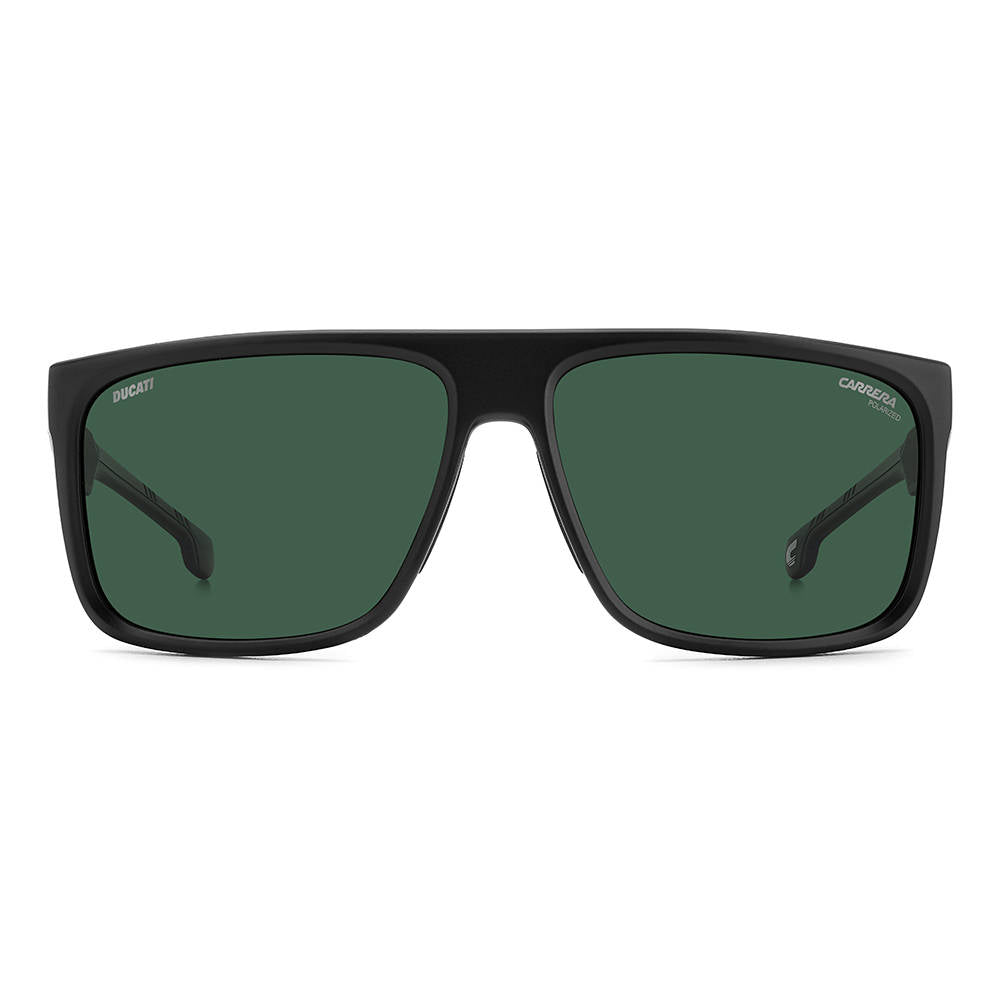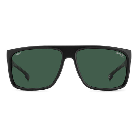 A sporty rectangular frame, aerodynamic temples, and legendary details come together in these statement men's sunglasses. Built to satisfy dynamic modern lifestyles, thanks to race-proof rubber inserts and comfortable internal grips, prepare to beat the glare with polarized green lenses in the Matte Black color way. Designed for a perfect fit under motorbike helmets, they boast the co-branded Carrera and Ducati styling to finish.