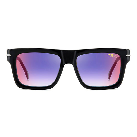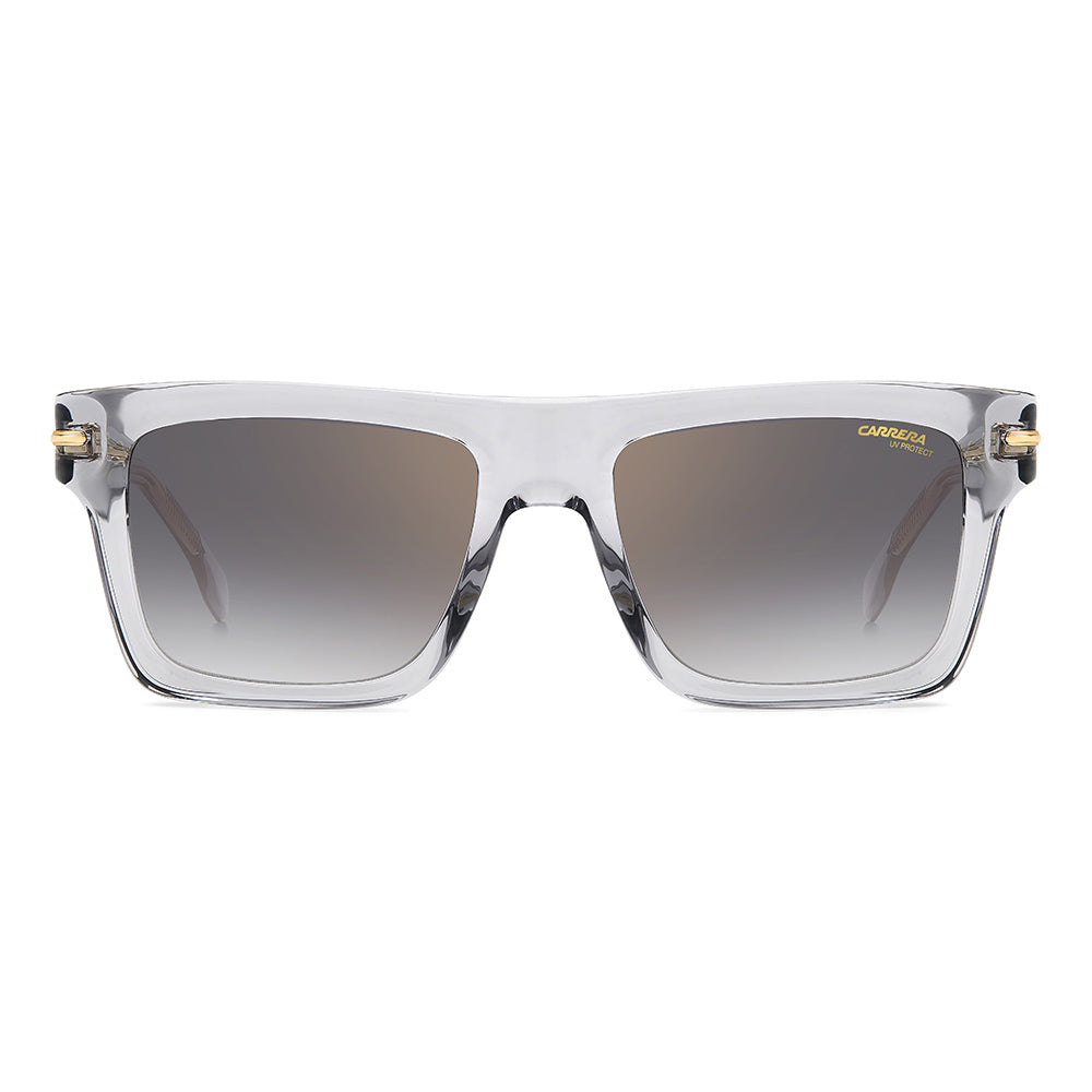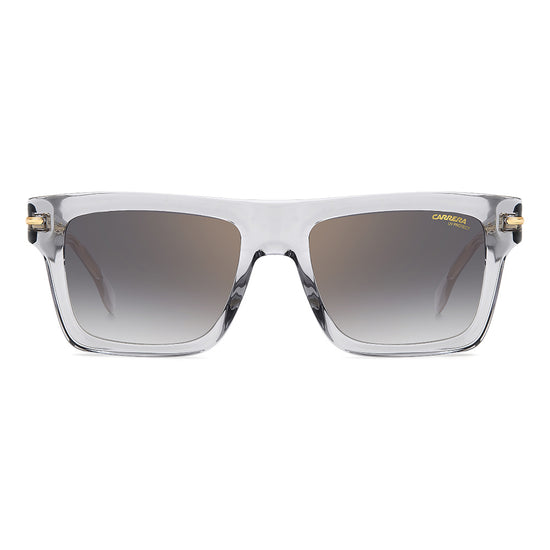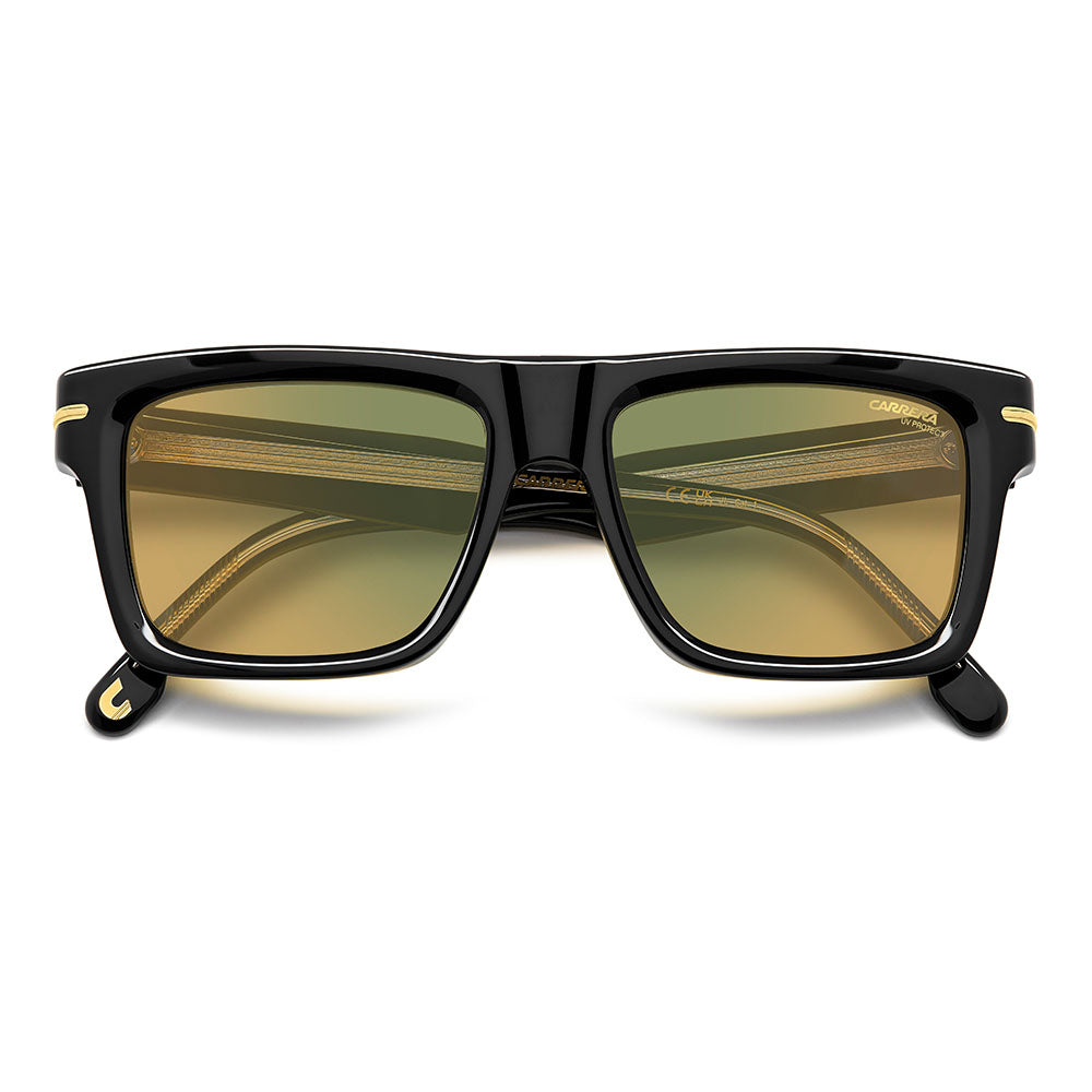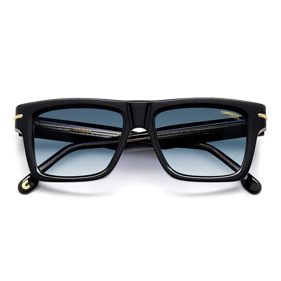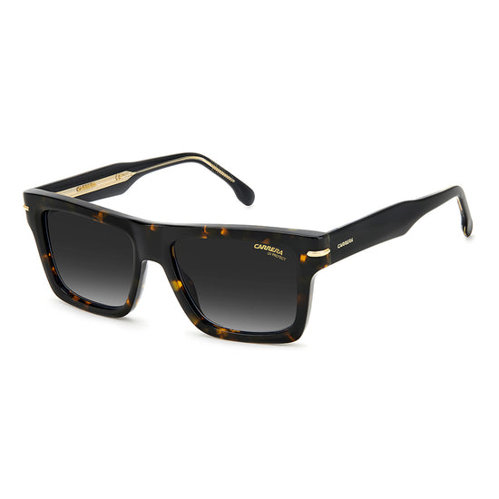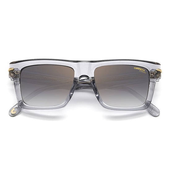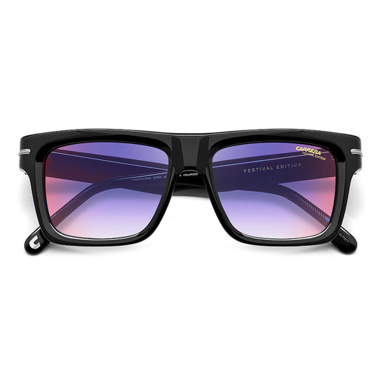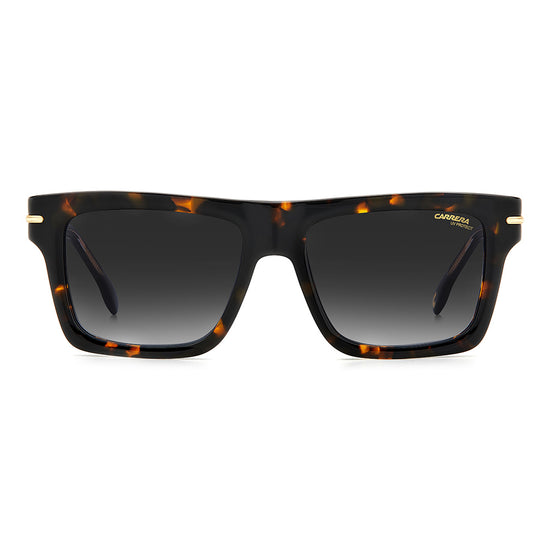 These sunglasses will be irresistible to fans of vintage aesthetics that take on unexpected shapes and bold proportions. Made entirely of acetate, they’re enriched by the metal detail with the ‘C’ logo that trims the front and signature fin temples, quintessential symbols inherited from the Carrera archive. They come in different colors and finishes, including transparent and multi-layer acetate, and are completed by gradient, mirrored or polarized lenses.