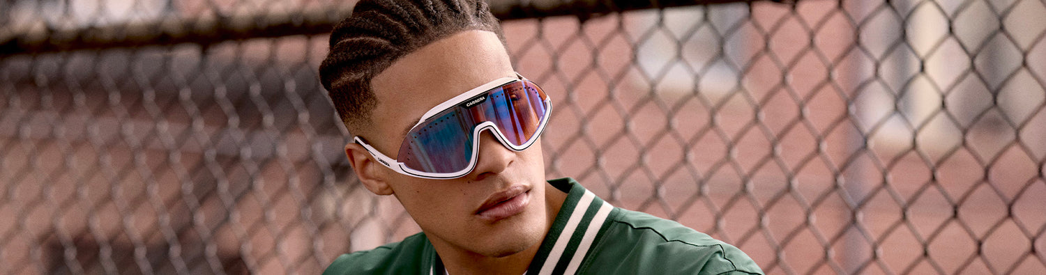 Full metal design or combined with metal temples, featuring vintage details inspired by the Carrera archives. Adjustable temples curved for a perfect fit and lanyard holes for added functionality. Removable eco-leather magnetic spoilers add versatility and a sporty edge.