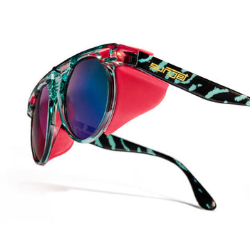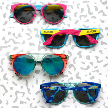 Sunjet, a brand born in the 1970s under the umbrella of Carrera, found its utmost expression in the 1990s, drawing inspiration from Pop culture and the latest trends of the time. Colorful and playful thanks to their signature contrasts and a touch irreverent, Sunjet glasses recall 1990s street culture, featuring graphics inspired by the graffiti that dominate city walls worldwide.