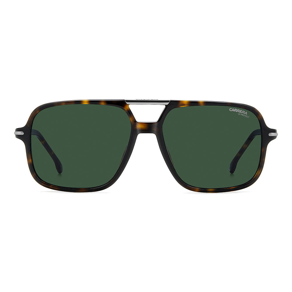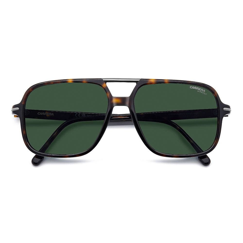 There’s clear vintage inspiration in these sunglasses. Carrera has tapped into its archives to develop the navigator frames with a double bridge, a look that’s as famous as it is characteristic of the brand. Metal inserts stand out on the acetate structure, including the Carrera ‘C’ which connects the front to the temples. The lenses come in mirrored, polarized or photochromic versions, the latter capable of darkening when exposed to bright light.