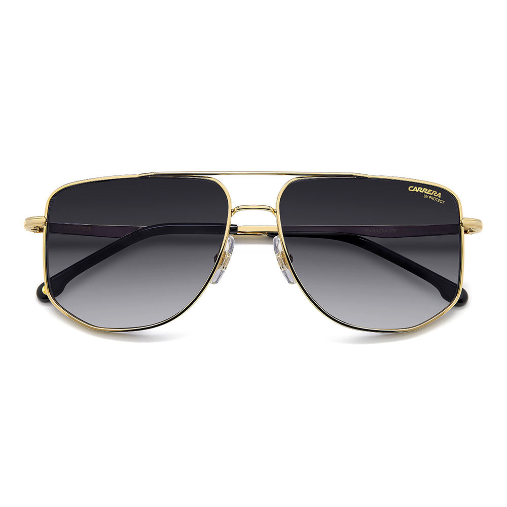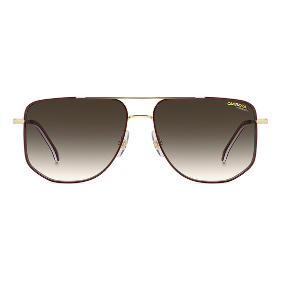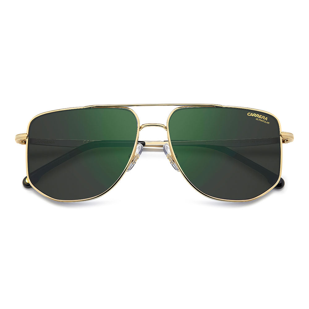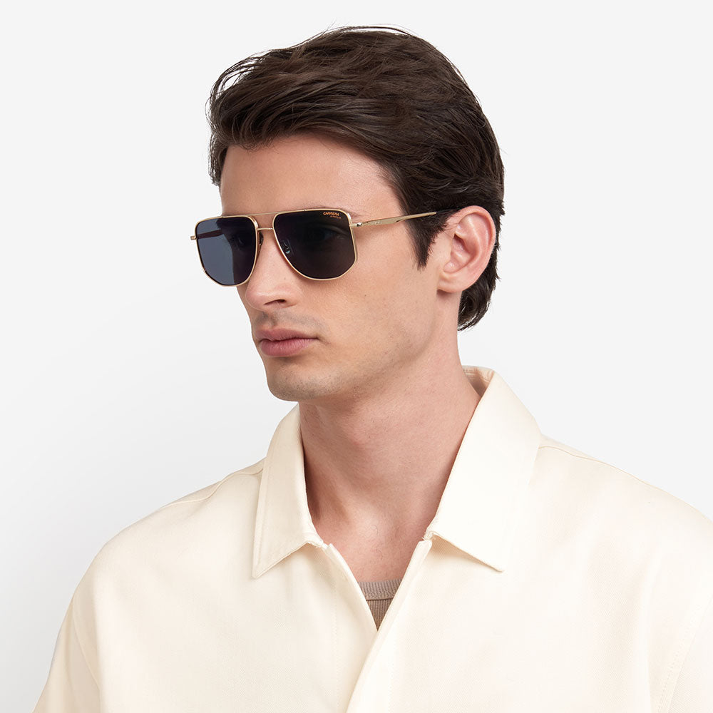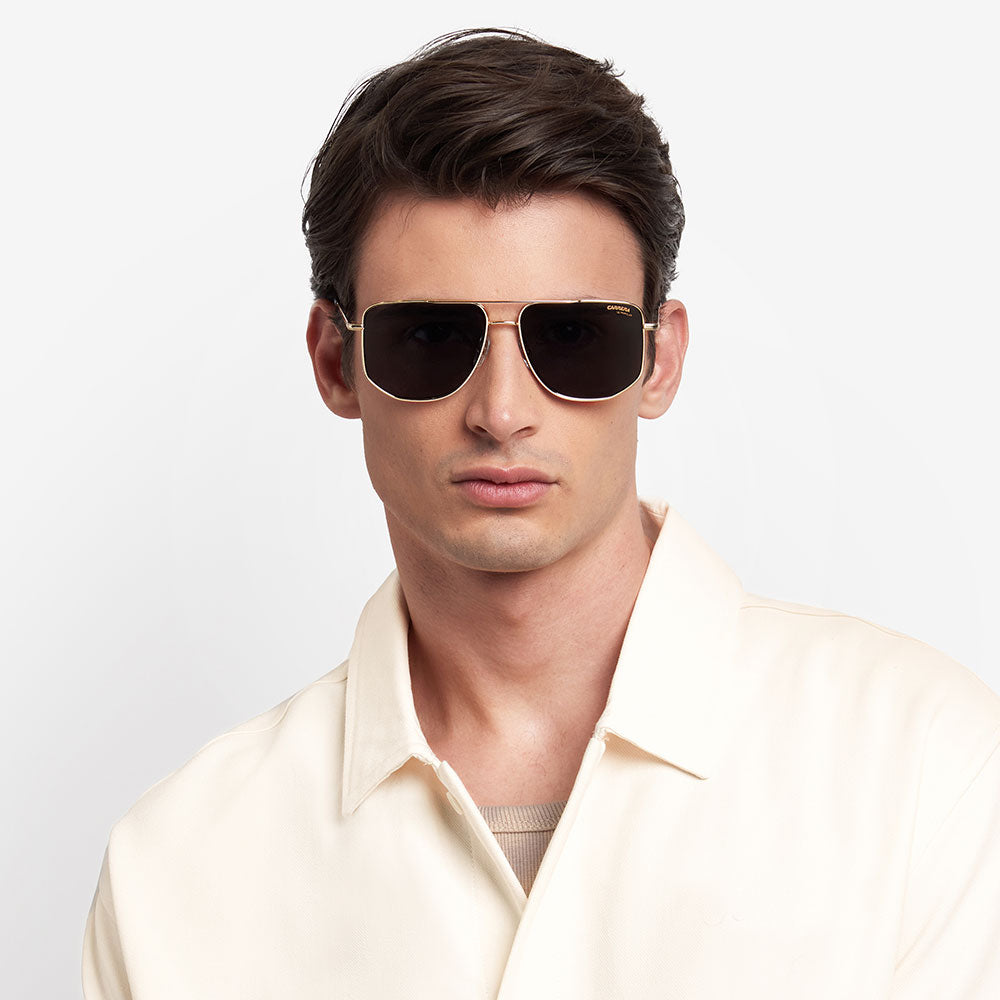These sunglasses celebrate Carrera heritage. The double-bridge frames are timeless and the metal temples are direct from the Carrera archives. The connection to the front takes the shape of the iconic flag, and the acetate end tips come in multilayer options in the brand's colours. The gradient lenses are eternal, brought into focus by polarized or ultrapolar versions.
