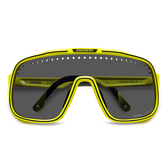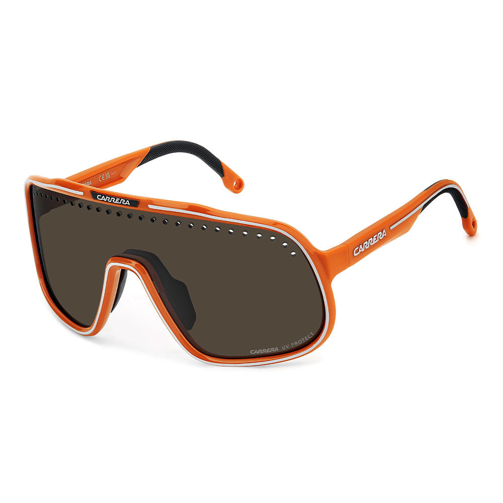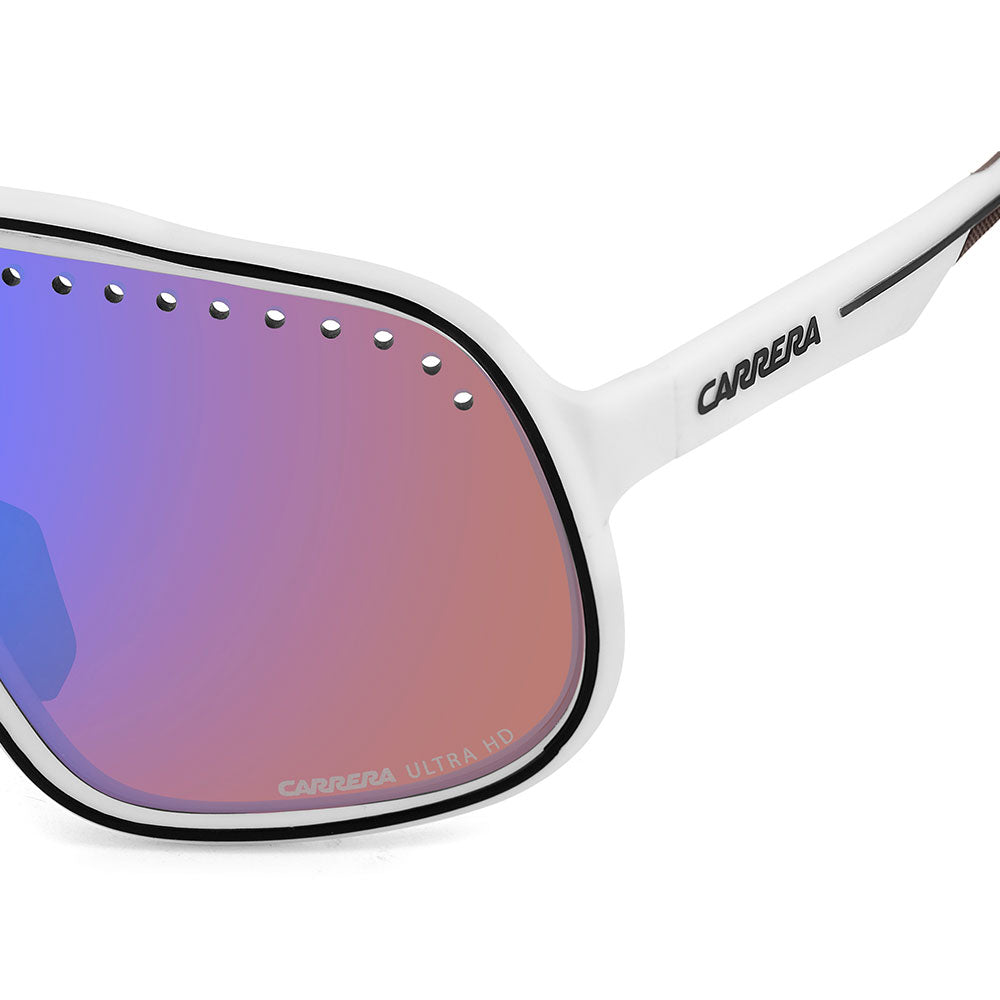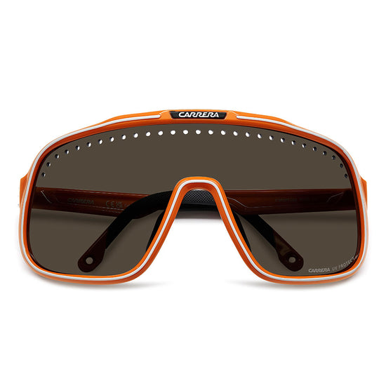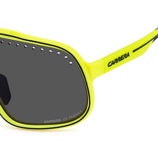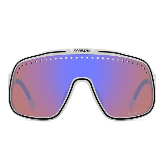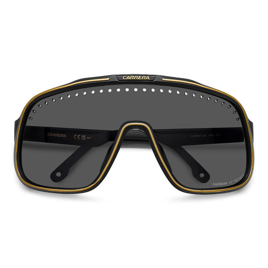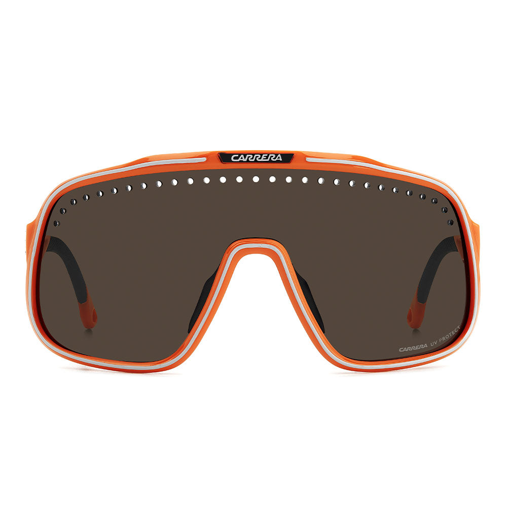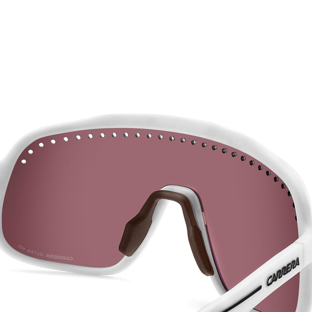 Inspired by sport and designed to be worn everywhere, these sunglasses express the bold style of Carrera. The shield front is decisive and on-trend as it wraps around to the sides, complete with perforations for added ventilation. The lens even comes in mirrored or high-contrast options. Impeccable with sporty outfits and unforgettable as part of street-style ensembles, these sunglasses are designed to be worn with ease, even under a helmet. The front is compatible with prescription clip-in lenses which can be purchased separately.