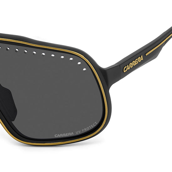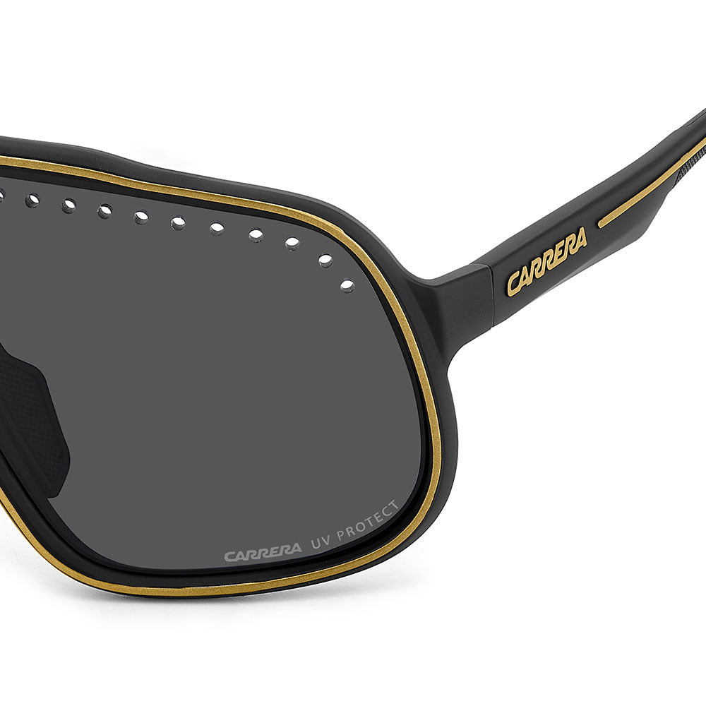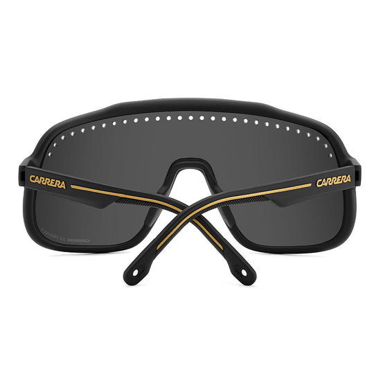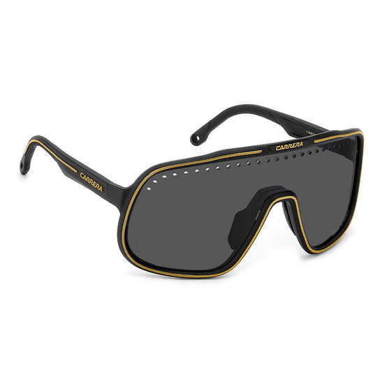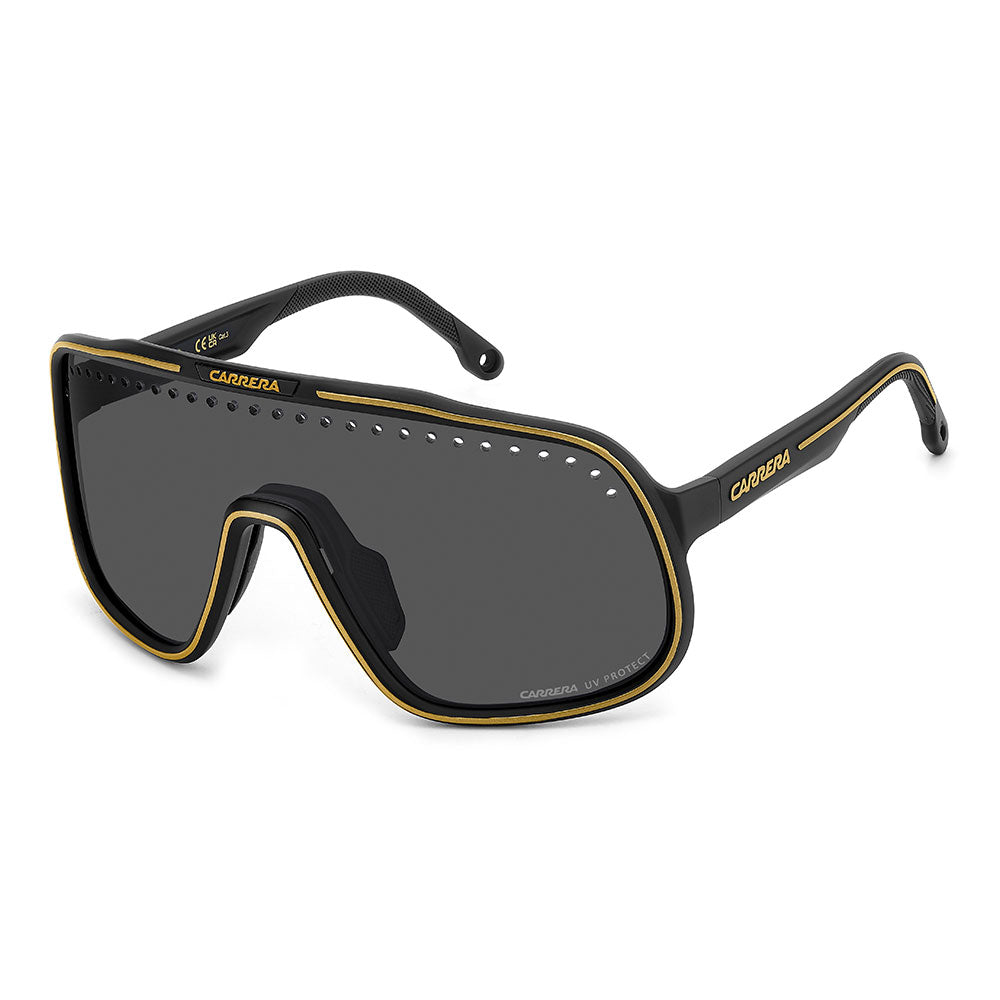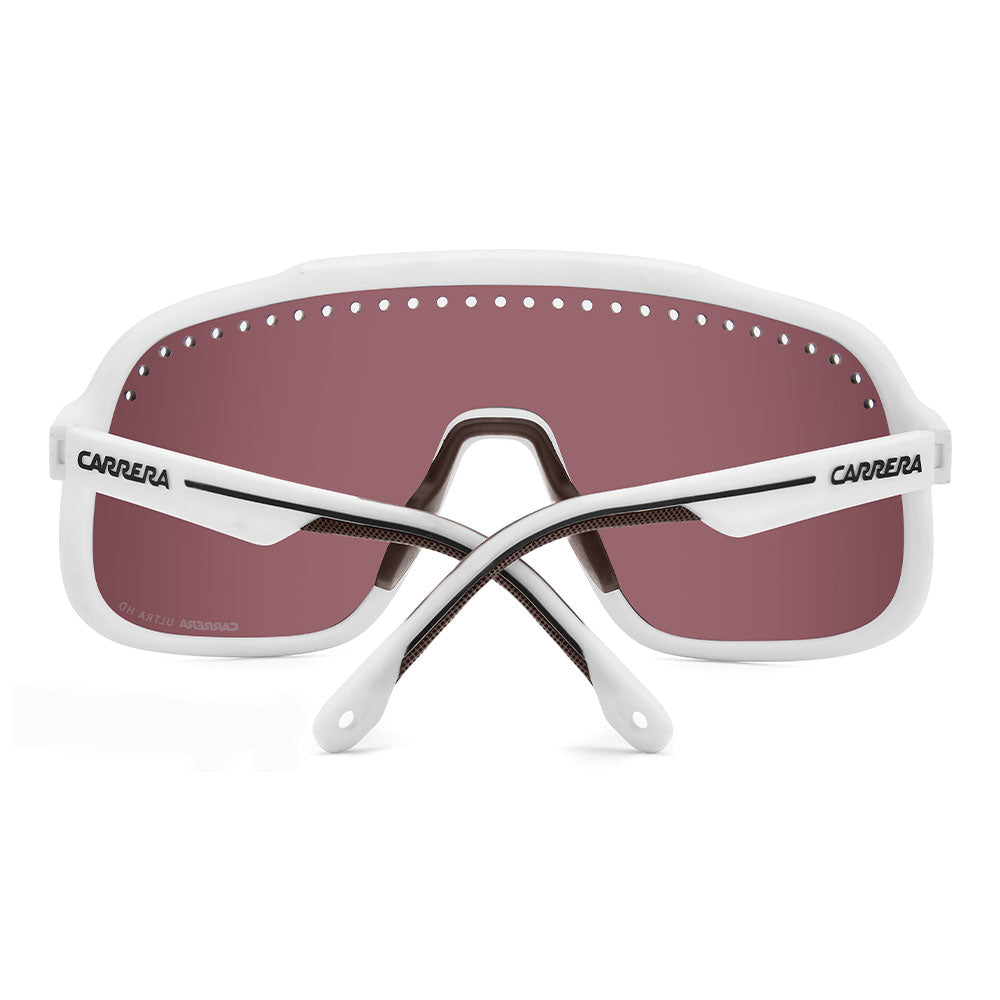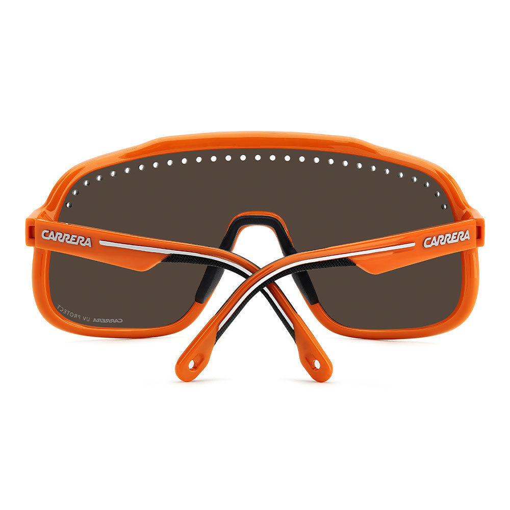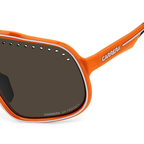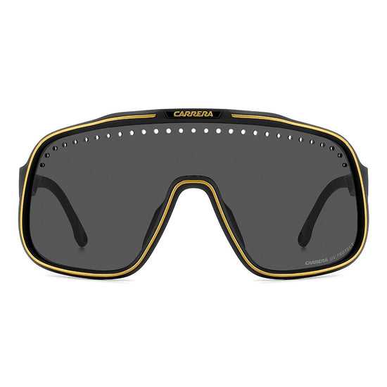 Inspired by sport and designed to be worn everywhere, these sunglasses express the bold style of Carrera. The shield front is decisive and on-trend as it wraps around to the sides, complete with perforations for added ventilation. The lens even comes in mirrored or high-contrast options. Impeccable with sporty outfits and unforgettable as part of street-style ensembles, these sunglasses are designed to be worn with ease, even under a helmet. The front is compatible with prescription clip-in lenses which can be purchased separately.