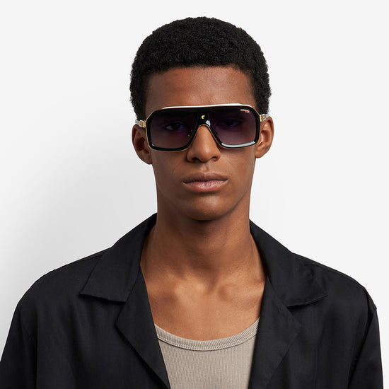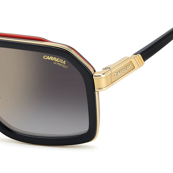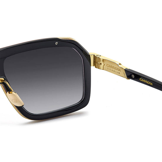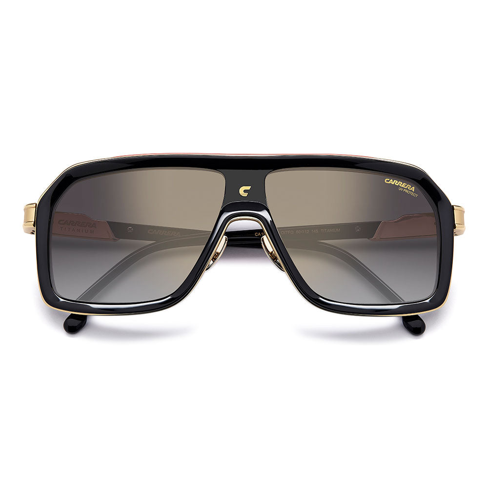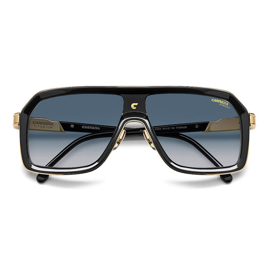 Carrera is always a step ahead, and it shows with these iconic sunglasses. The structure in titanium - an ultralight premium material - makes them special, with a high-impact acetate coating. With a brow bar along the top and the Carrera ‘C’ in the space between the lenses, this style truly has it all. Flex hinges, adjustable nose pads blended with Carrera iconic boldness make it a pair to wear at all times.
