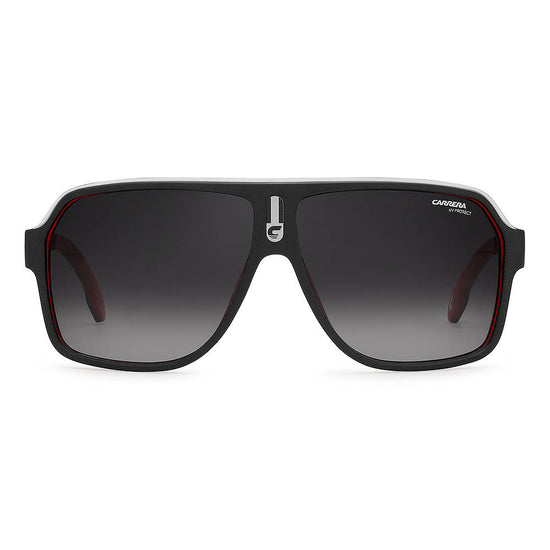 Stay ahead of the style curve with Carrera's Spring/Summer 2018 eyewear collection. One of the brand's all-time best-sellers, these oversized square sunglasses return for yet another season in a new and unmistakable colorway. The injection-molded aviator silhouette has a multilayered black and white finish, with cool gradient lenses adding a striking twist to the classic look. A front center 'C' monogram, the brand's signature stripe detailing along the top bar and logo-stamped temples ensure a signature finish from all angles, with the minuscule 'C' logo inside the left end tip being the cherry on top. A discreet yet directional design with an athleisure appeal that's impossible to ignore.