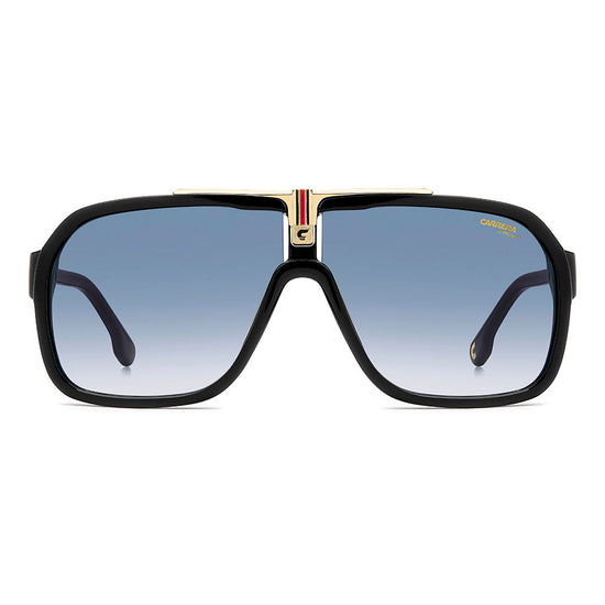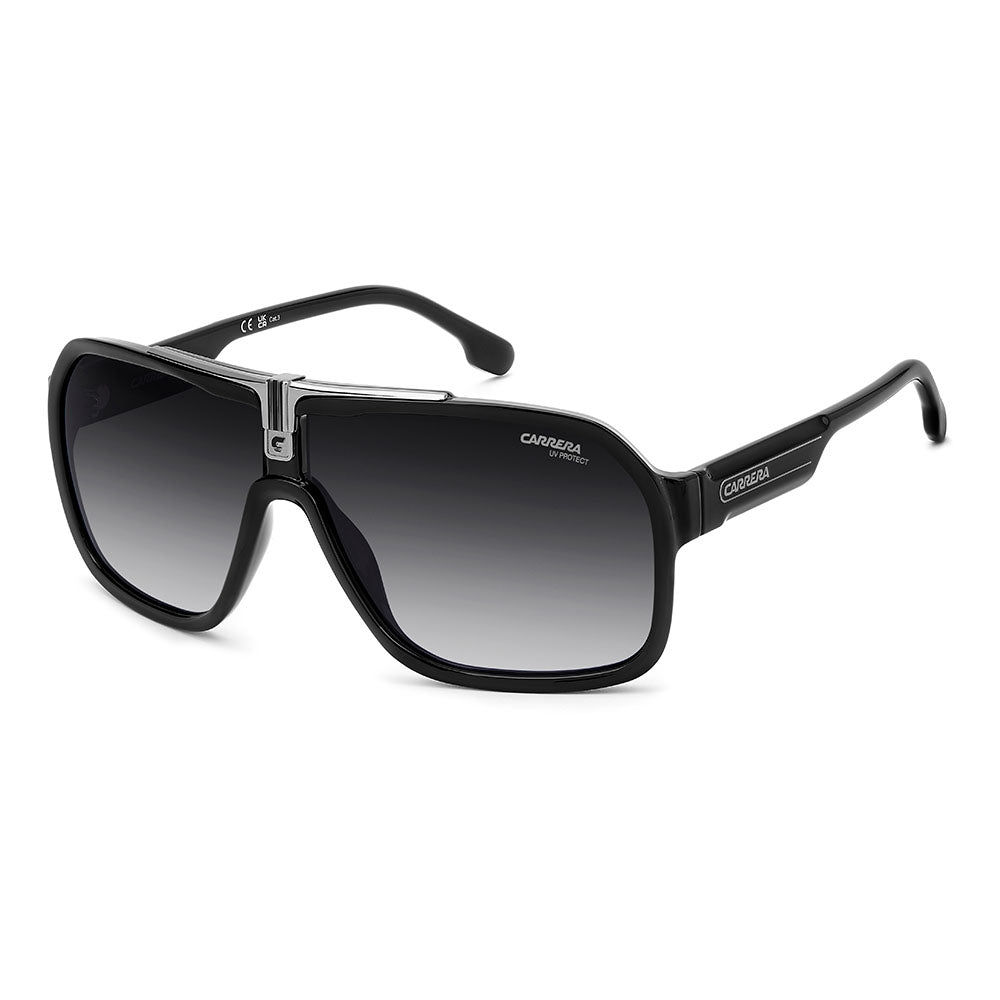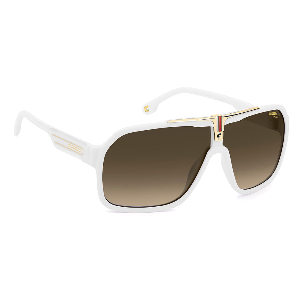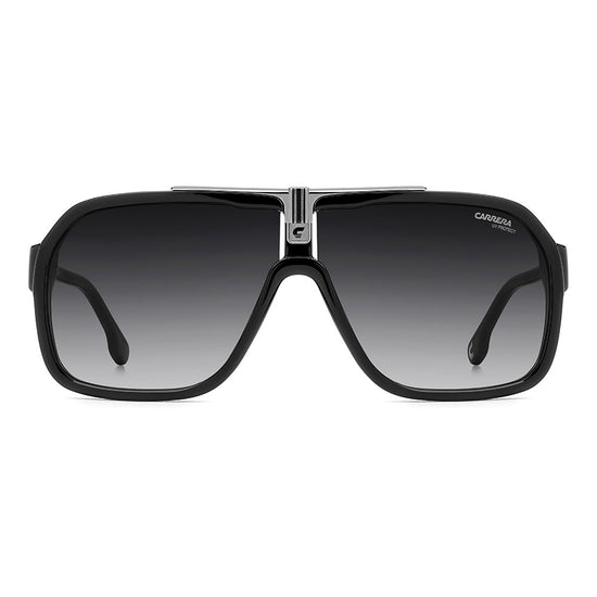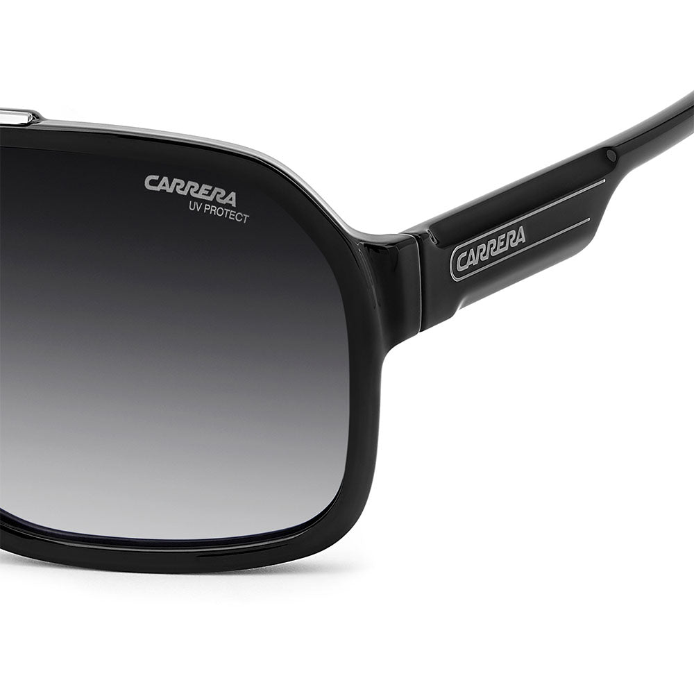 An iconic style adapted to suit today's dynamic lifestyles--these men's sunglasses boast large, rectangular pilot frames, topped with a flat brow bar for a contemporary look. Sculpted from injection-molded polyamide, they feature sleek metal temples detailed with Carrera's trademark Flag motif. Available in a range of colorways inspired by Carrera's legendary heritage.