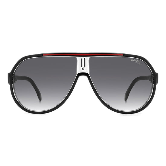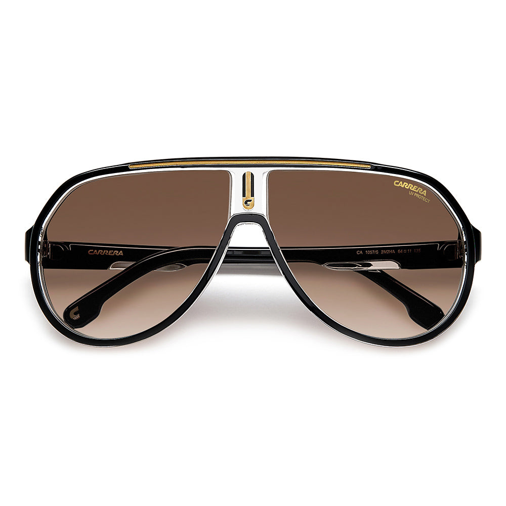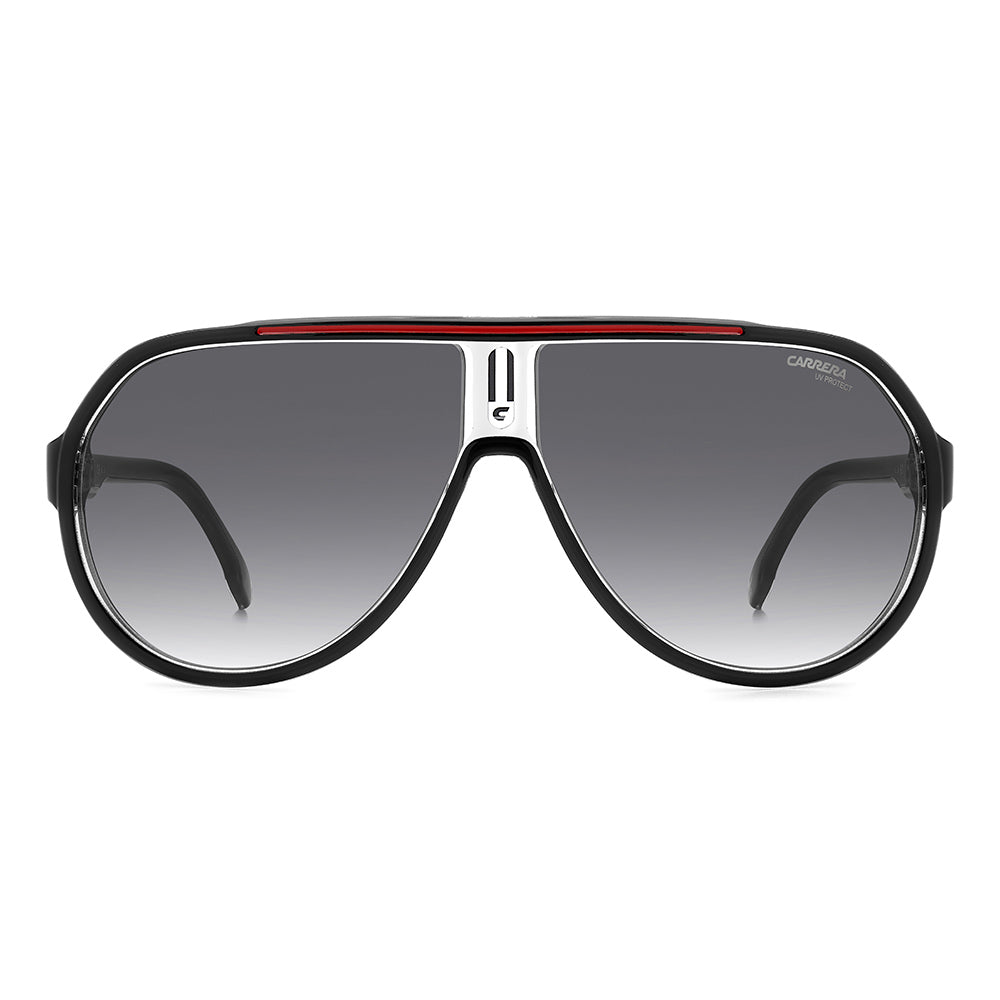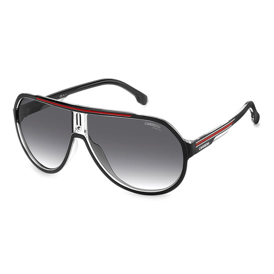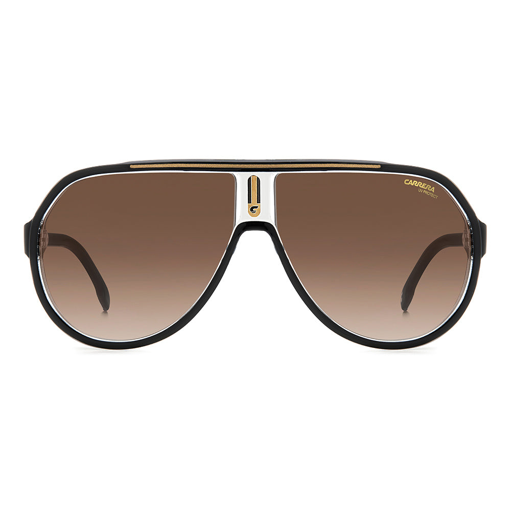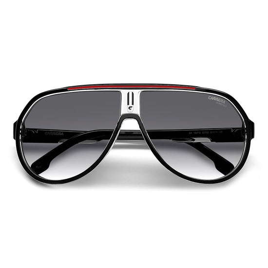These aviator sunglasses, typical of the brand, are the redesign of a Carrera classic. They stand out from the crowd thanks to the cult tailored details such as the "C" on the front, the lettering logo and Carrera's trademark flag on the sculpted temples. This accessory is available with gradient or polarized lenses and combines futuristic details with a retro design.