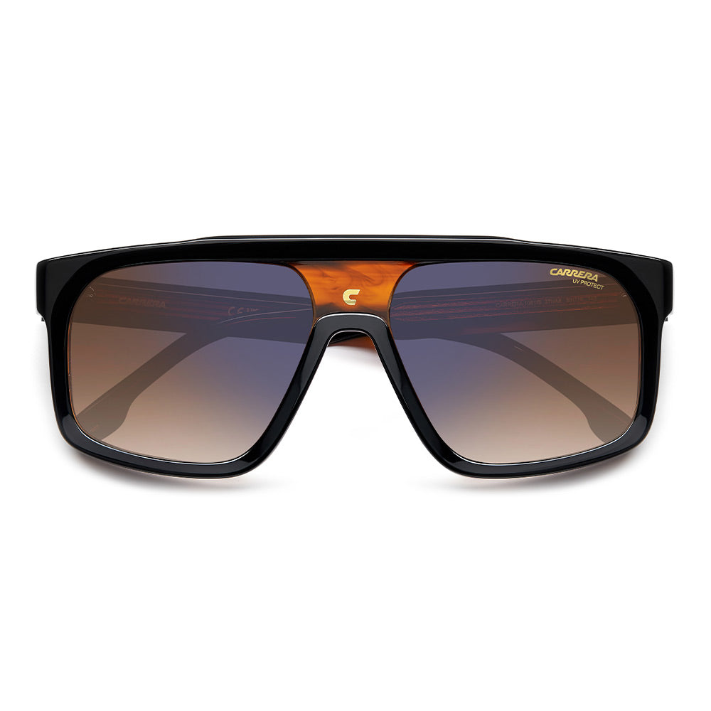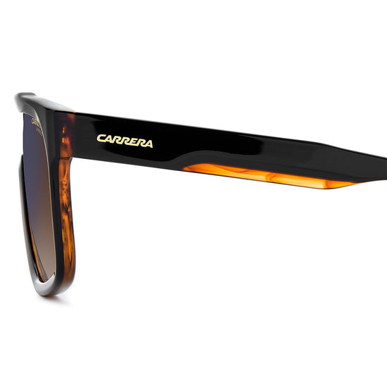 Carrera has embraced its most iconic stylistic elements to create sunglasses that pave the way to new trends. Fashion-forward customers will love these acetate frames, entirely flat along the top. Varying degrees of transparency highlight the Carrera ‘C’ that’s placed front and centre. The brand also offers them in clear acetate, where the textural motif of the metal core can be seen on the temples. The frames can be fitted with prescription lenses, and mirrored or polarized versions are available.