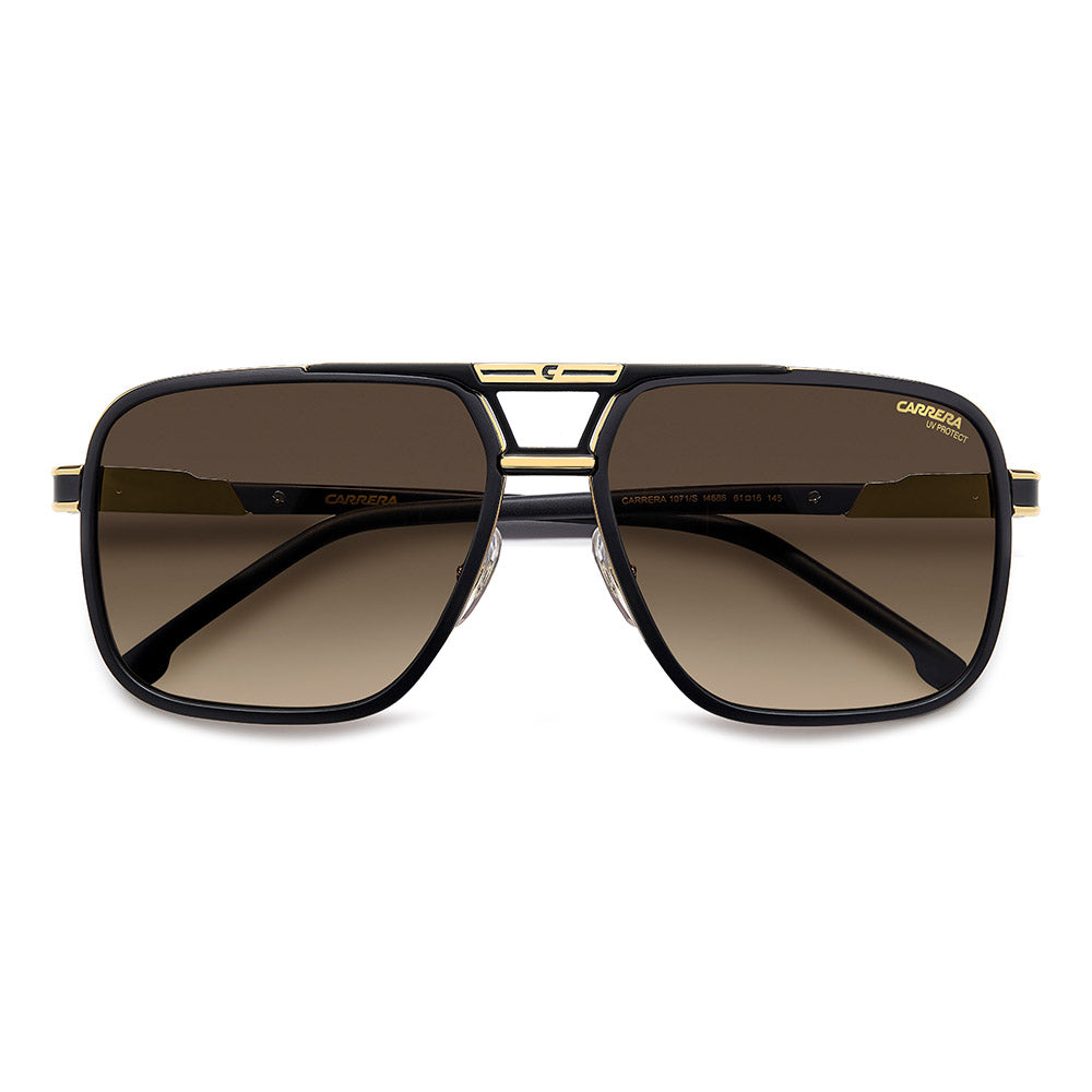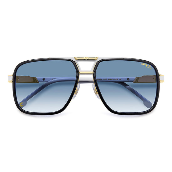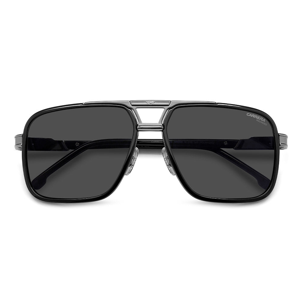 The decisive character of Carrera is expressed in these sunglasses. The navigator front, one of the brand’s most classic shapes, is in metal with injected polyamide and a double bridge trimmed by the ‘C’ logo. The metal temples feature an embossed Carrera logo, and are completed by long end tips in acetate. Flexible hinges and the ability to fit these these glasses with prescription lenses offer true freedom of use. Some versions come with polarized sun lenses.