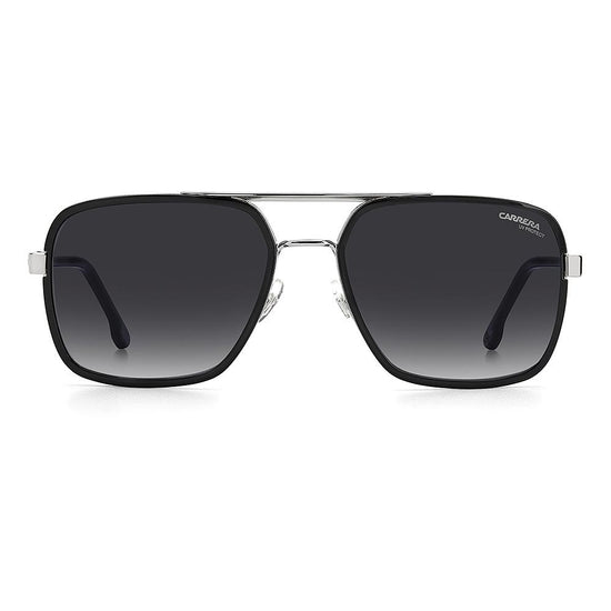 Updating a vintage shape with a modern sensibility, these sunglasses will add a signature Carrera touch to your sunny edits. The captivating construction combines a layer of lightweight metal with injection-molded polyamide rims and arms for a cool contrast. Notice the proud logo detailing and Carrera’s signature ‘grid’ texture – a sophisticated three-dimensional effect adorning the outer temples – that round off the look with a dose of iconic appeal.