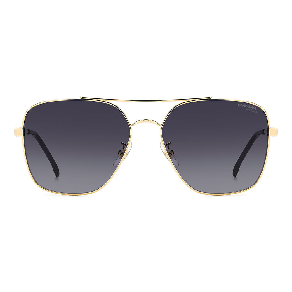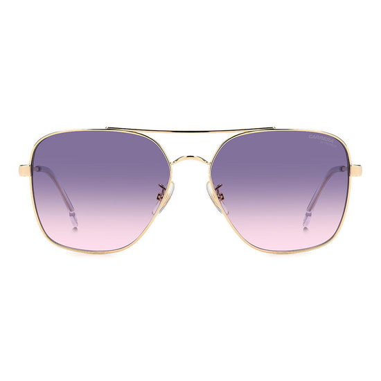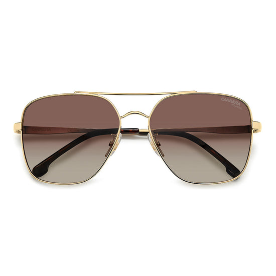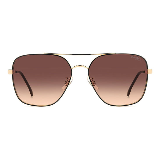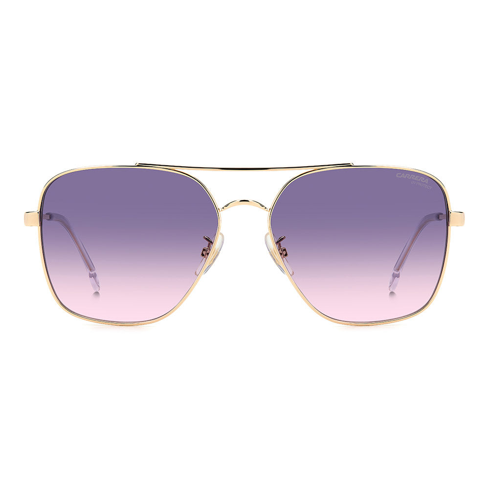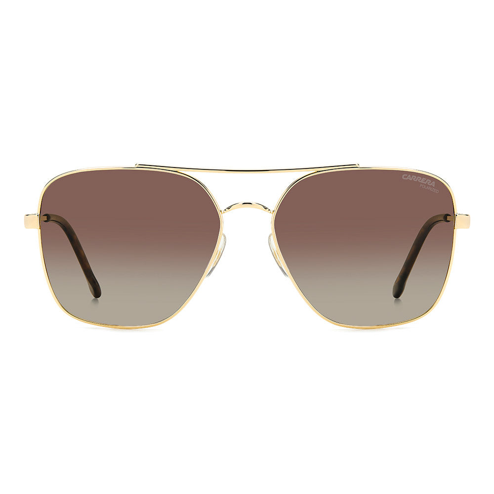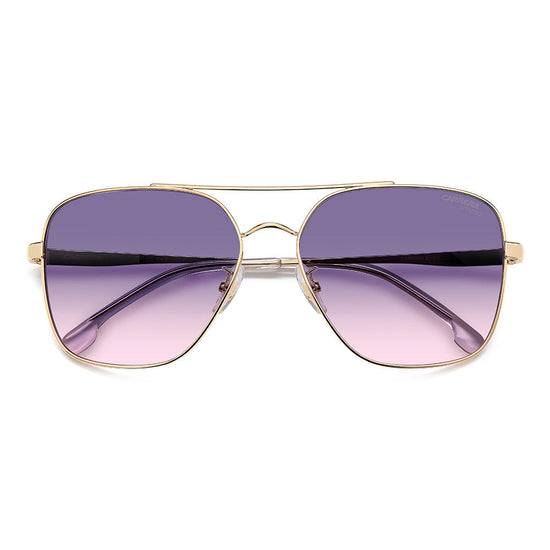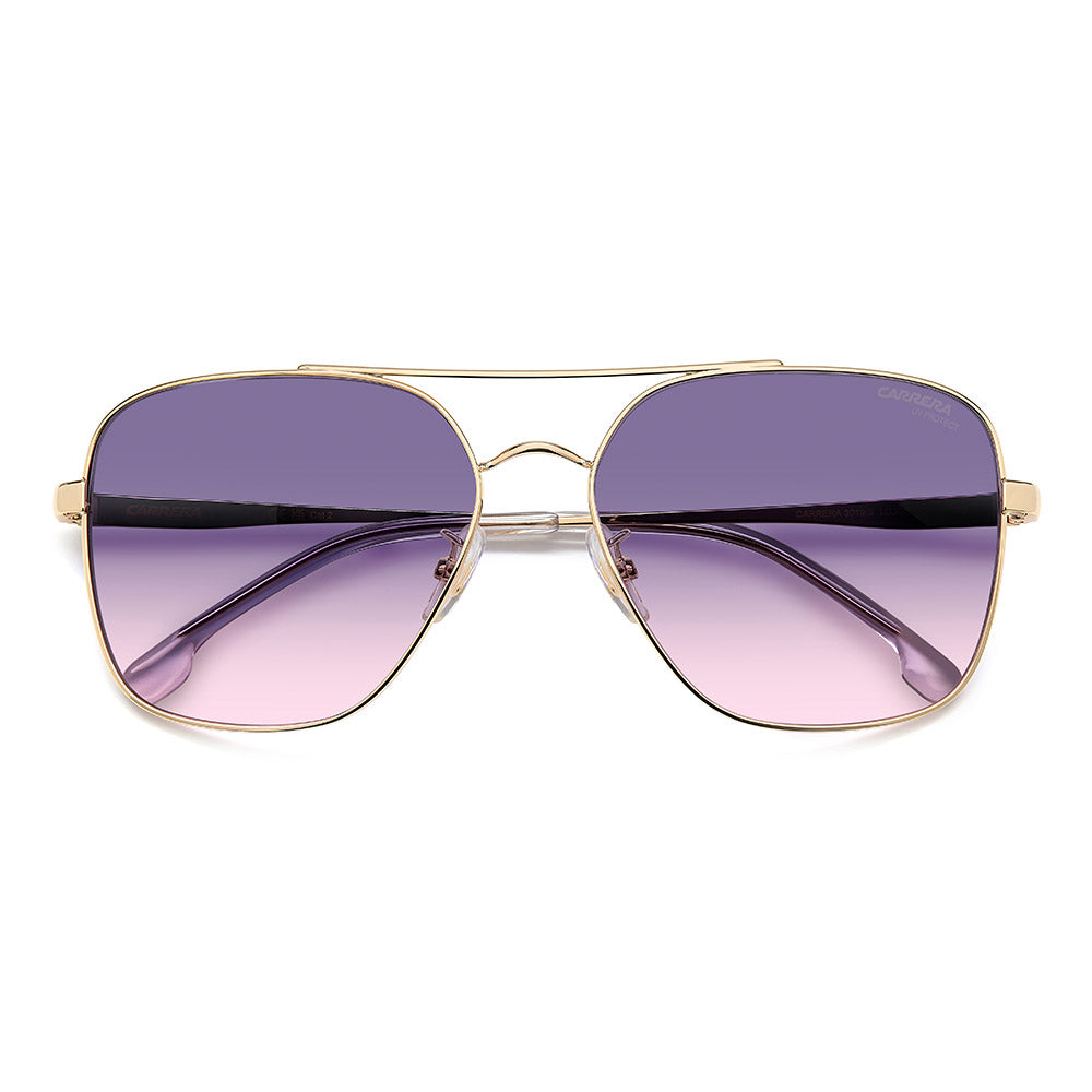 These women's sunglasses interpret Carrera heritage in a new, sophisticated way. The metal structure is characterised by a distinct double bridge and slender temples with acetate end tips, including a transparent version. It’s a style to flaunt with a carefree attitude thanks to lightweight construction, comfortable nose pads, and the option to use prescription sun lenses. Also available with coloured trim on the front and with polarized lenses.