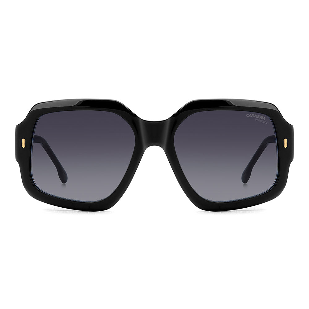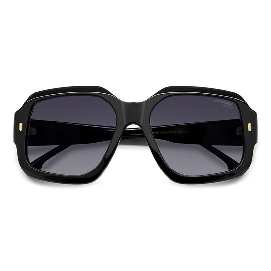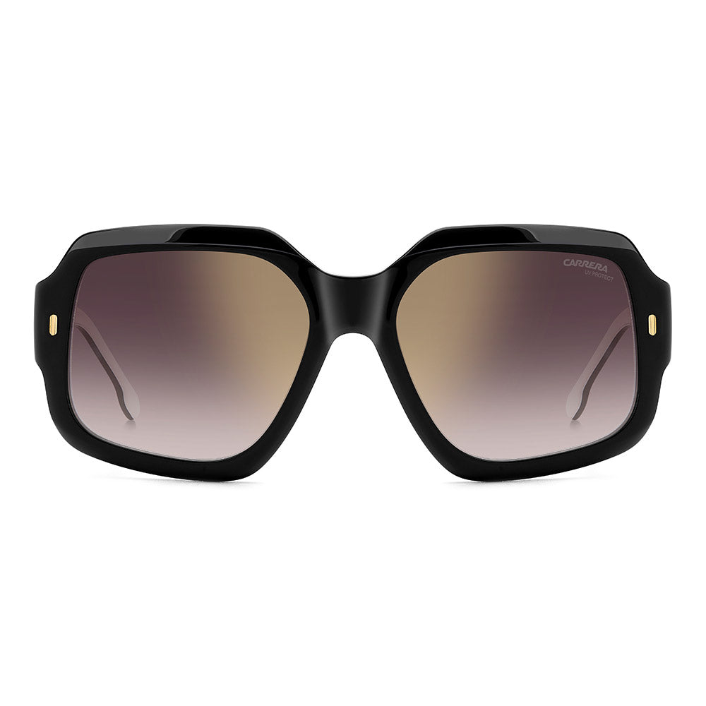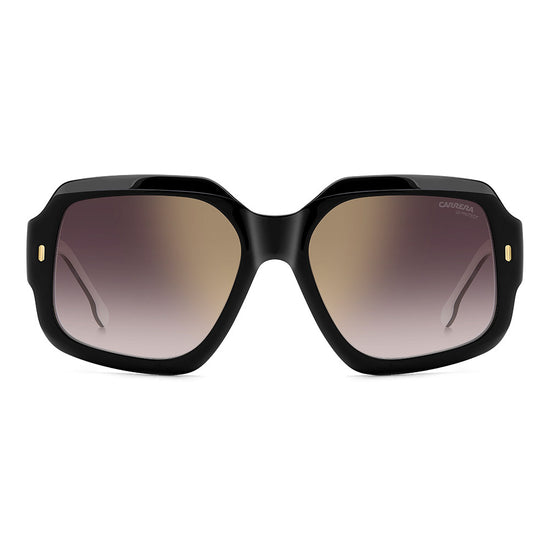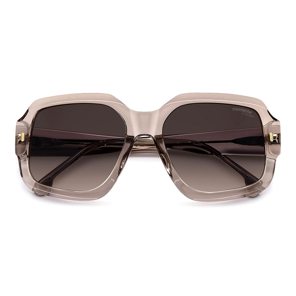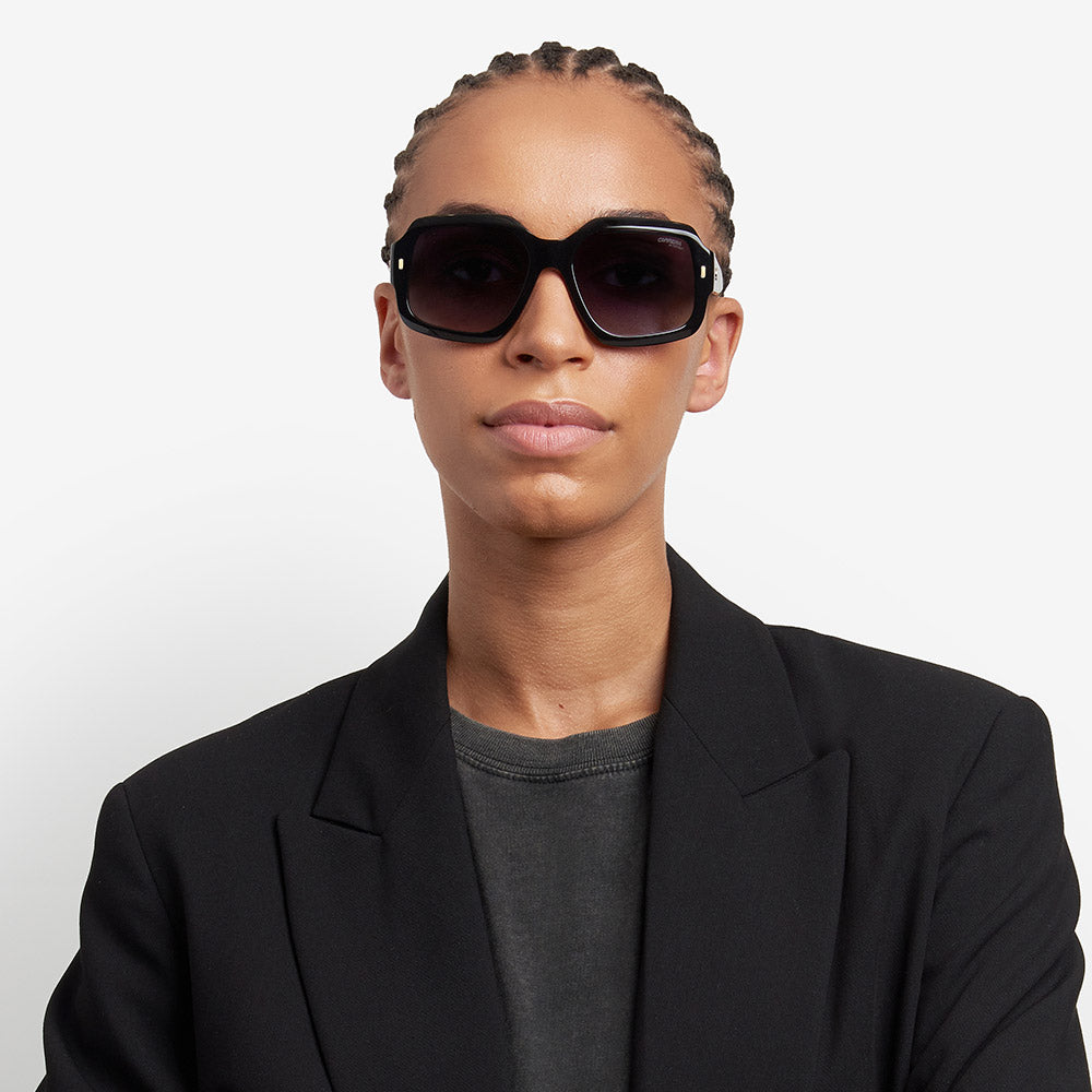 An interplay of shapes and proportions defines these women’s Carrera sunglasses: square, decisive and truly noteworthy. The shape of the front is unique, holding gradient or mirrored lenses, with the option to fit them with prescription lenses. The acetate structure is embellished by metal details: front rivets inspired by the Carrera flag and the Carrera ‘C’ on the temples. A neutral colour palette completes their distinctive aesthetic.