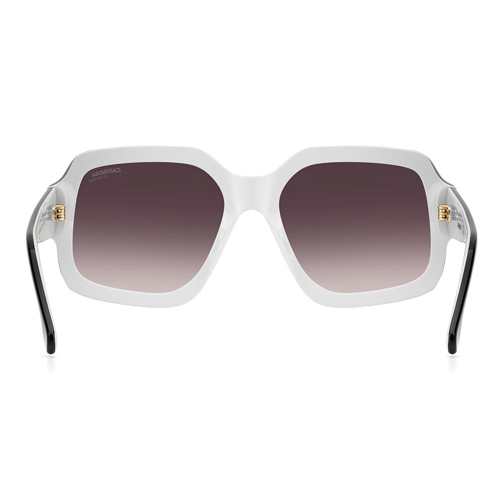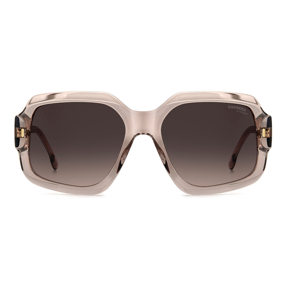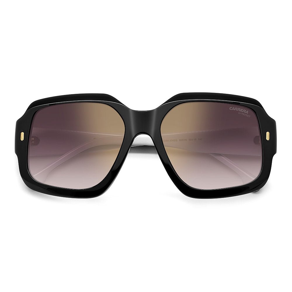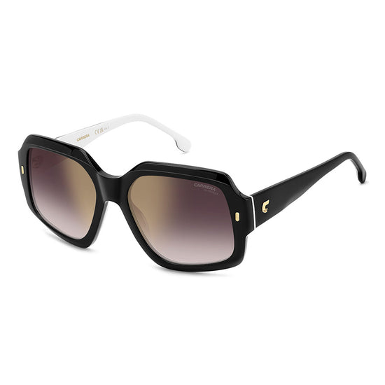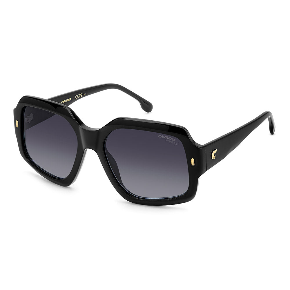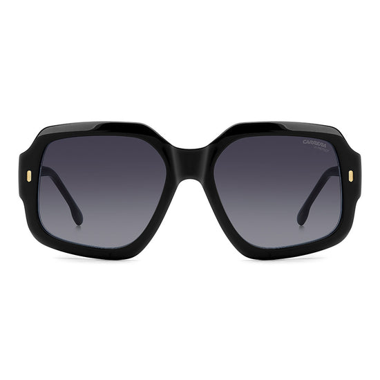 An interplay of shapes and proportions defines these women’s Carrera sunglasses: square, decisive and truly noteworthy. The shape of the front is unique, holding gradient or mirrored lenses, with the option to fit them with prescription lenses. The acetate structure is embellished by metal details: front rivets inspired by the Carrera flag and the Carrera ‘C’ on the temples. A neutral colour palette completes their distinctive aesthetic.