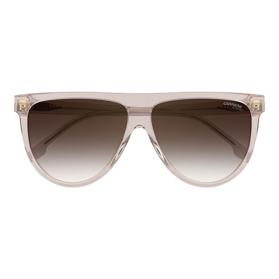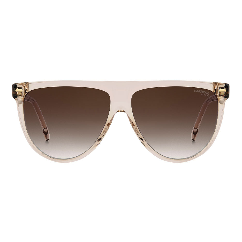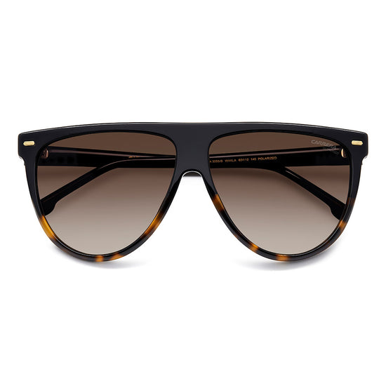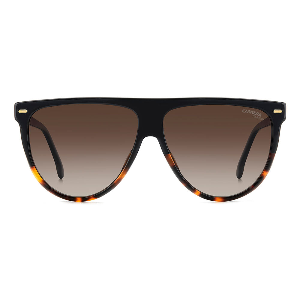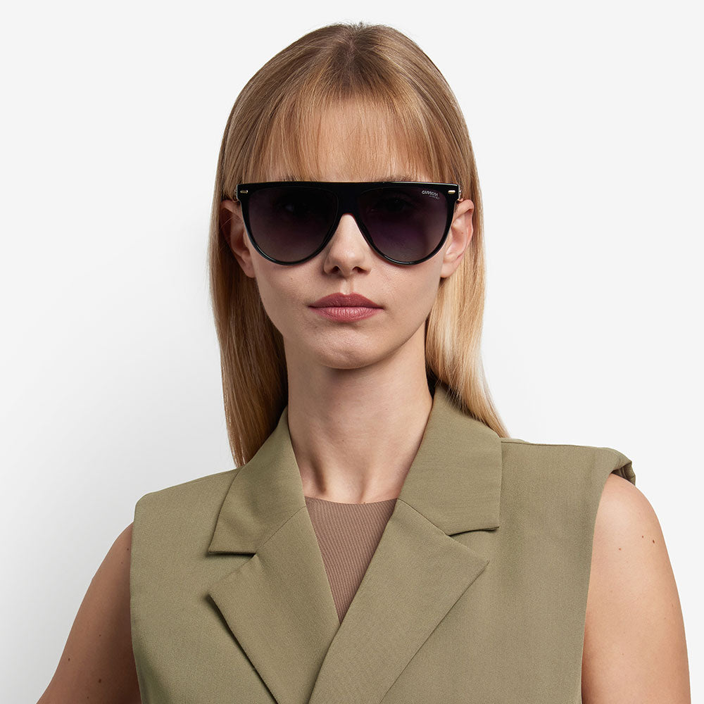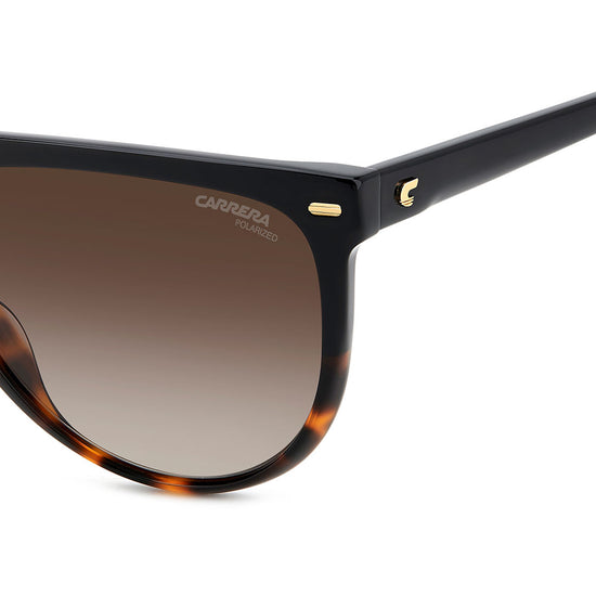 These Carrera women's sunglasses take a classic look and give it a Carrera twist. Flat along the top, one version has a contrast insert to accentuate the silhouette. The metal rivets add a bit of shine, and the embossed 'C' on the temples is instantly recognizable. The gradient aviator lenses come in polarized versions.