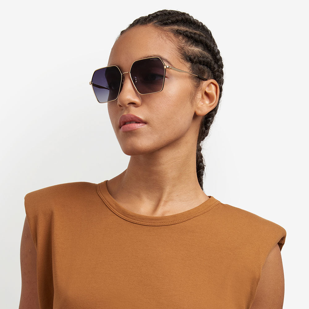 Carrera knows how to make sunglasses unique. This style for women surprises with its hexagonal design. The rims are contoured in enamel in contemporary hues, on-tone with the gradient lenses, which in turn come in a mirrored option. The structure is lightweight and the nose pads are adjustable.