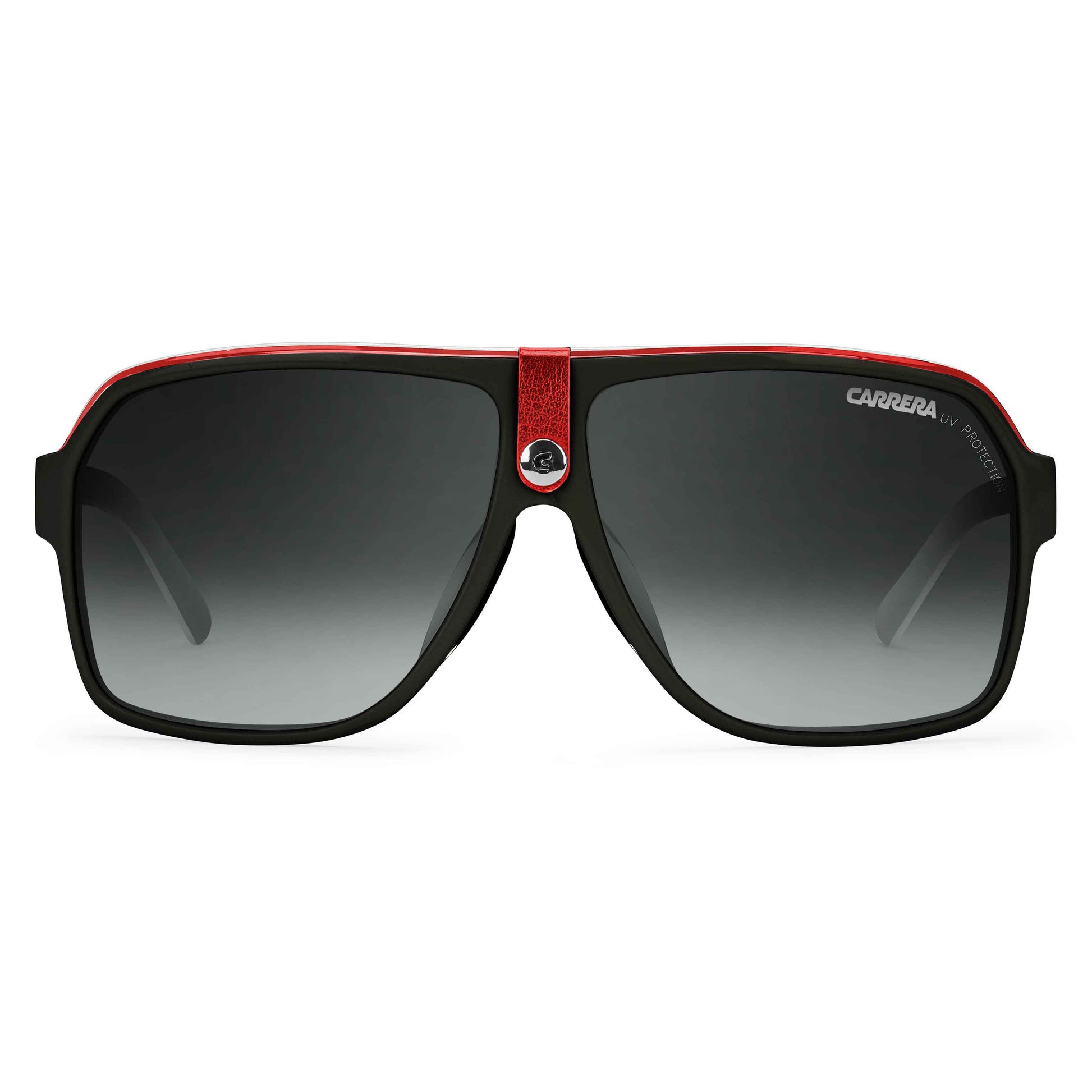 A unique combination of exceptional craft, everyday wearability and serious character, Carrera's latest eyewear collection sees the label's C-logo return to the spotlight. Take these striking rimless sunglasses, for example. Crafted from gold-tone metal, they're detailed with a refreshed version of the brand's trademark: the distinct 'C' proudly positioned center and front. Carrera's logo lettering along the arms, a set of logo-etched gradient lenses and curved acetate end tips complete this streamlined yet statement-making choice.