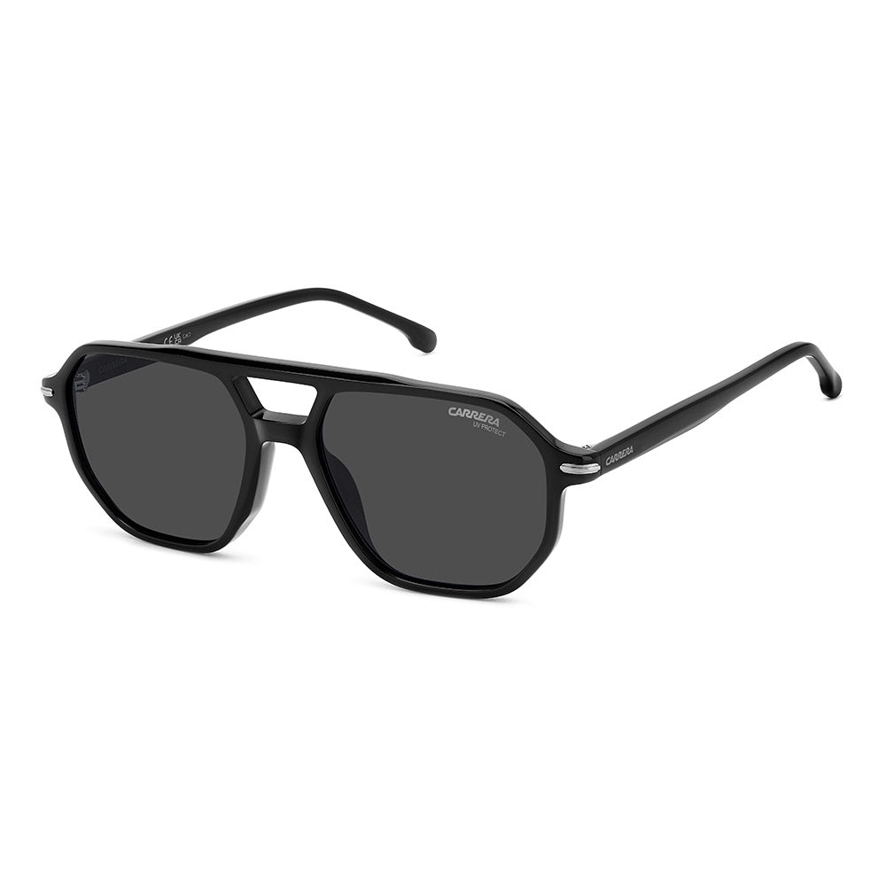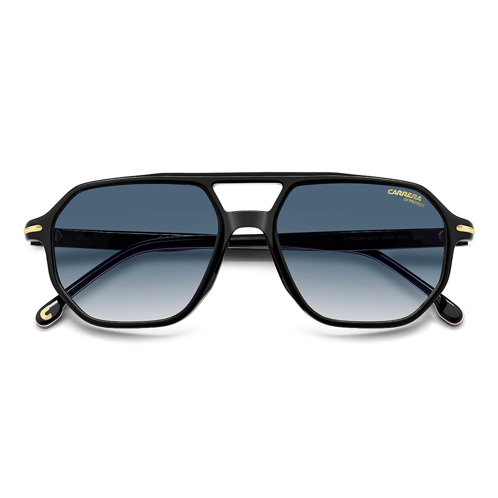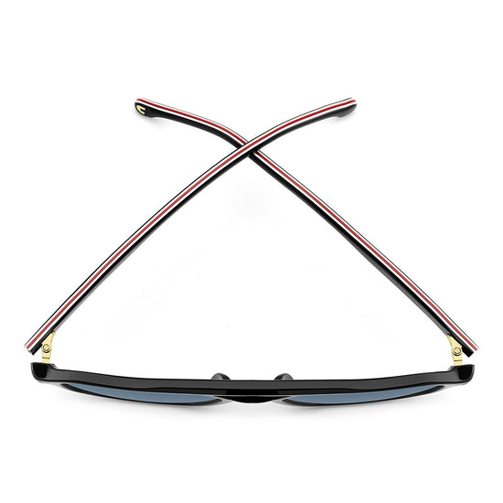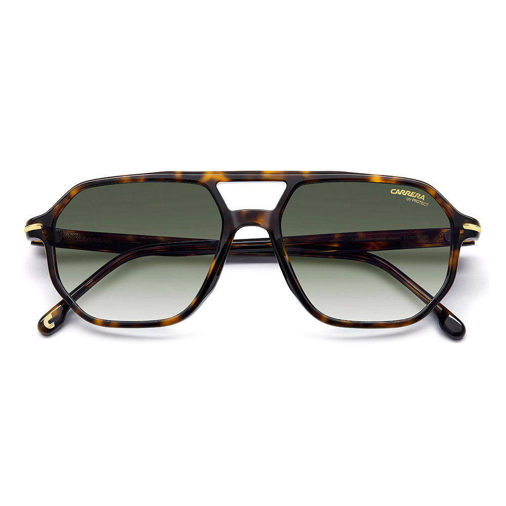 These acetate sunglasses are a decisive expression of Carrera character. Their sculpted profiles, pilot shape, double bridge, and the ‘C’ shaped metal insert that extends from the front to the fin temples conquer at first sight. They even come in versions with mirrored lenses or multi-layer temples in the Carrera colours. The frames can be fitted with prescription lenses.