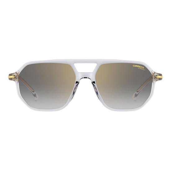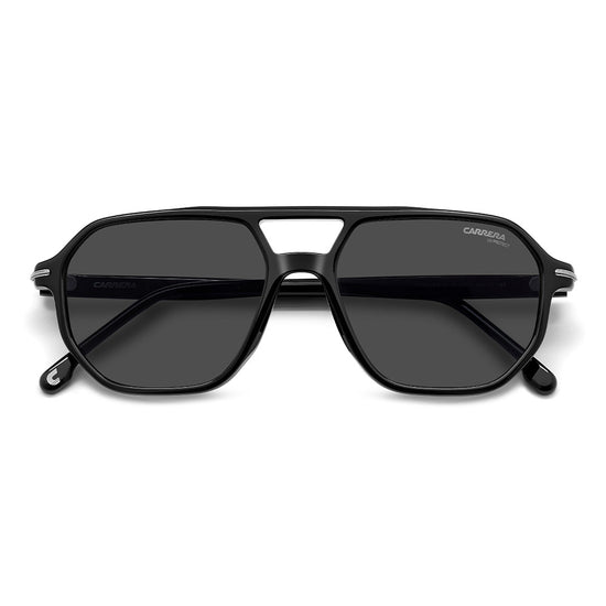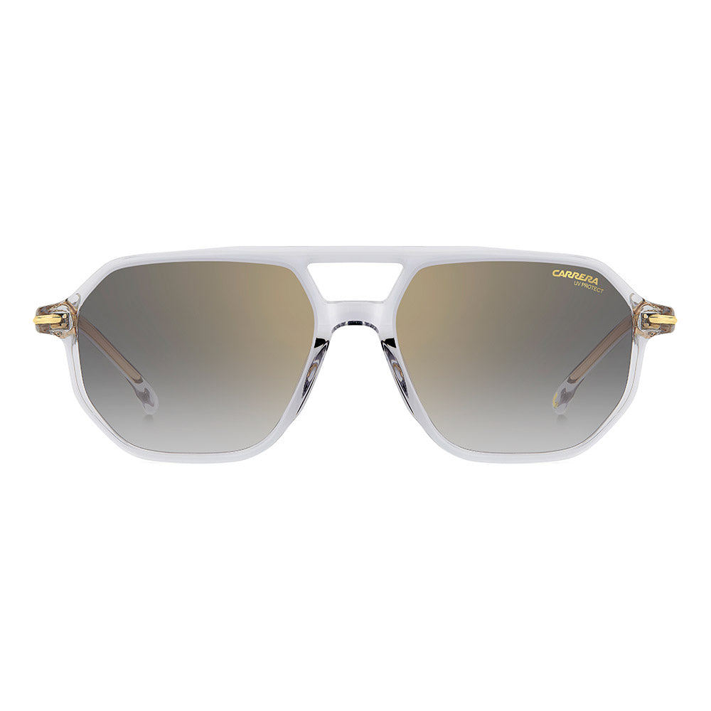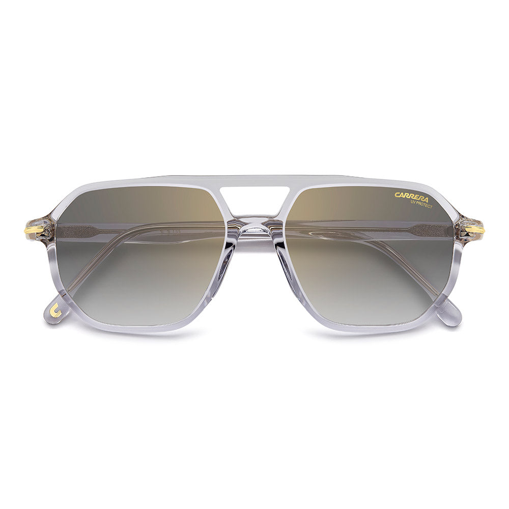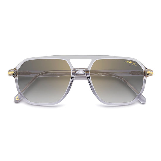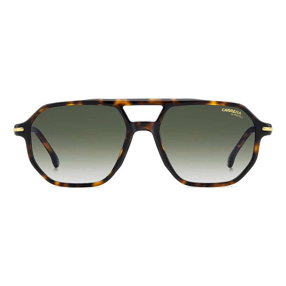 These acetate sunglasses are a decisive expression of Carrera character. Their sculpted profiles, pilot shape, double bridge, and the ‘C’ shaped metal insert that extends from the front to the fin temples conquer at first sight. They even come in versions with mirrored lenses or multi-layer temples in the Carrera colours. The frames can be fitted with prescription lenses.