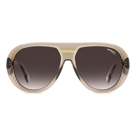 These Carrera sunglasses are sure to take centre stage. The brand interprets the aviator design with its modern and daring style. The design includes new sculpted, oversized temples. The frame is crafted in Italy and signed with the metal plaque with the Victory logo. It comes in several, equally iconic colourways.